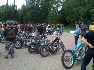 We arrived to Norrtälje and rided bikes in to show, biggest news was that Lävi has got his newest build runnin and it sits nicely on the grass, people seemed to like it and it won the 1:st place in classic custom, so not bad at all !!!